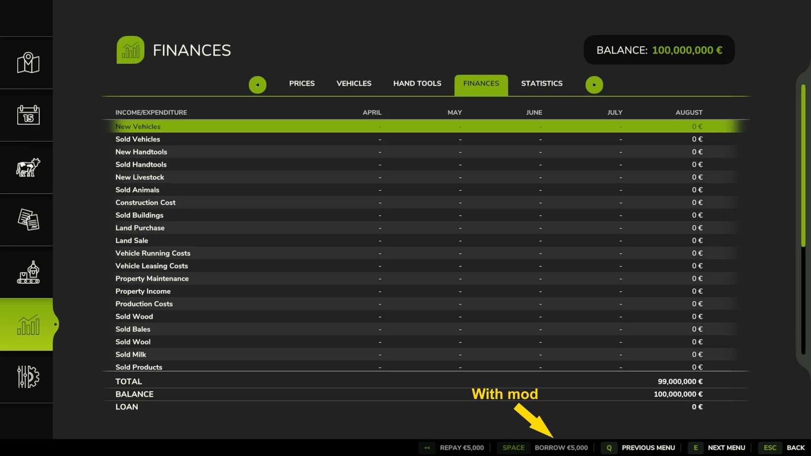 The modification completely blocks the possibility of taking a loan in the game.