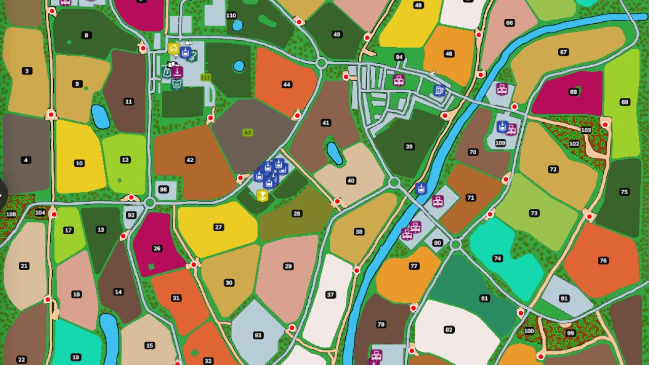 Several plots to create your farms or place your factories (9 in total) (no factories exists on the map, I leave you with your imagination).