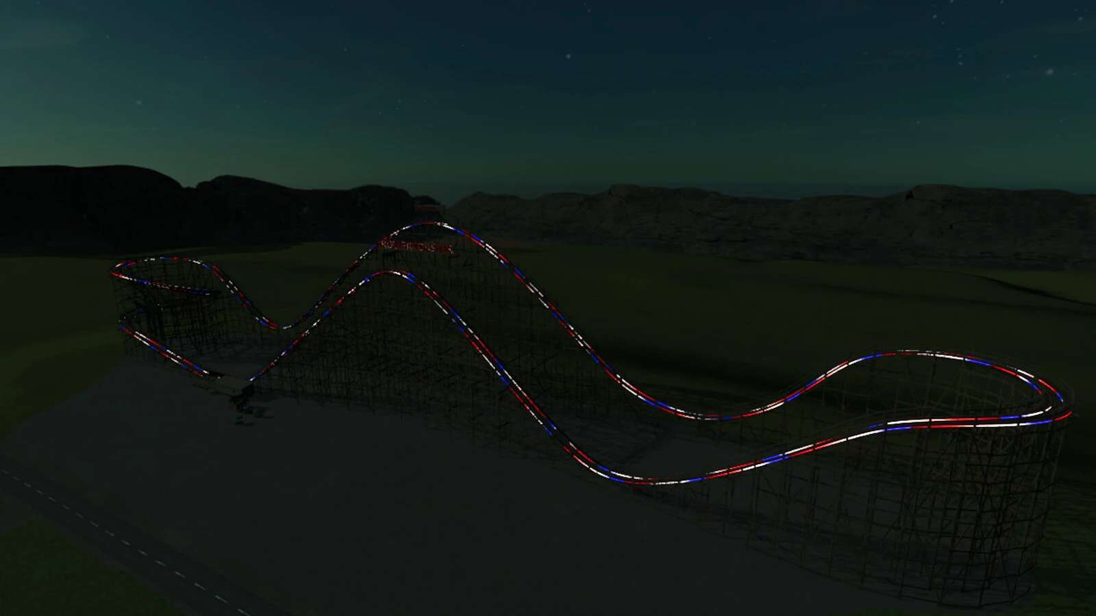 Photosensitive Safe Version: Color selectable light ropes that follow the track, you select a color with the customization option before placing it and starting construction. The lights will be a solid color and not flash or change colors.