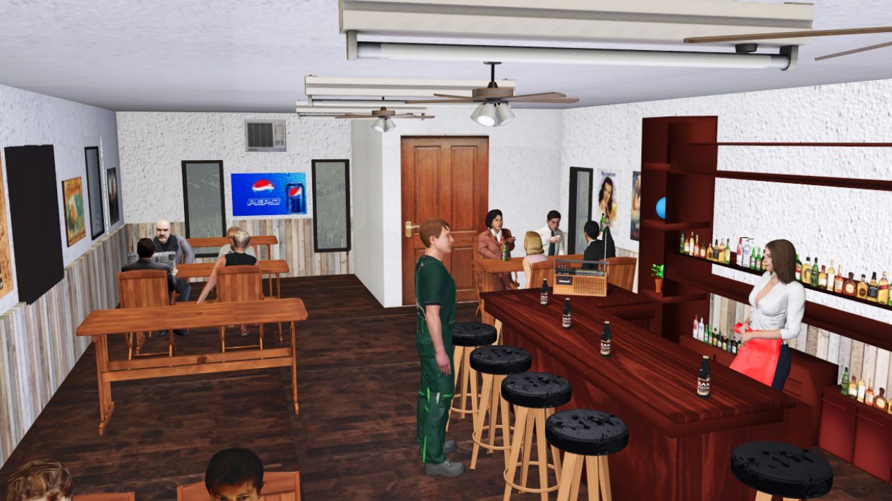 Placeable Pub. Animated doors and lights, and radio. When you start a new career, the pub door opens an hour after you place it. 149 megabytes because the song is large.