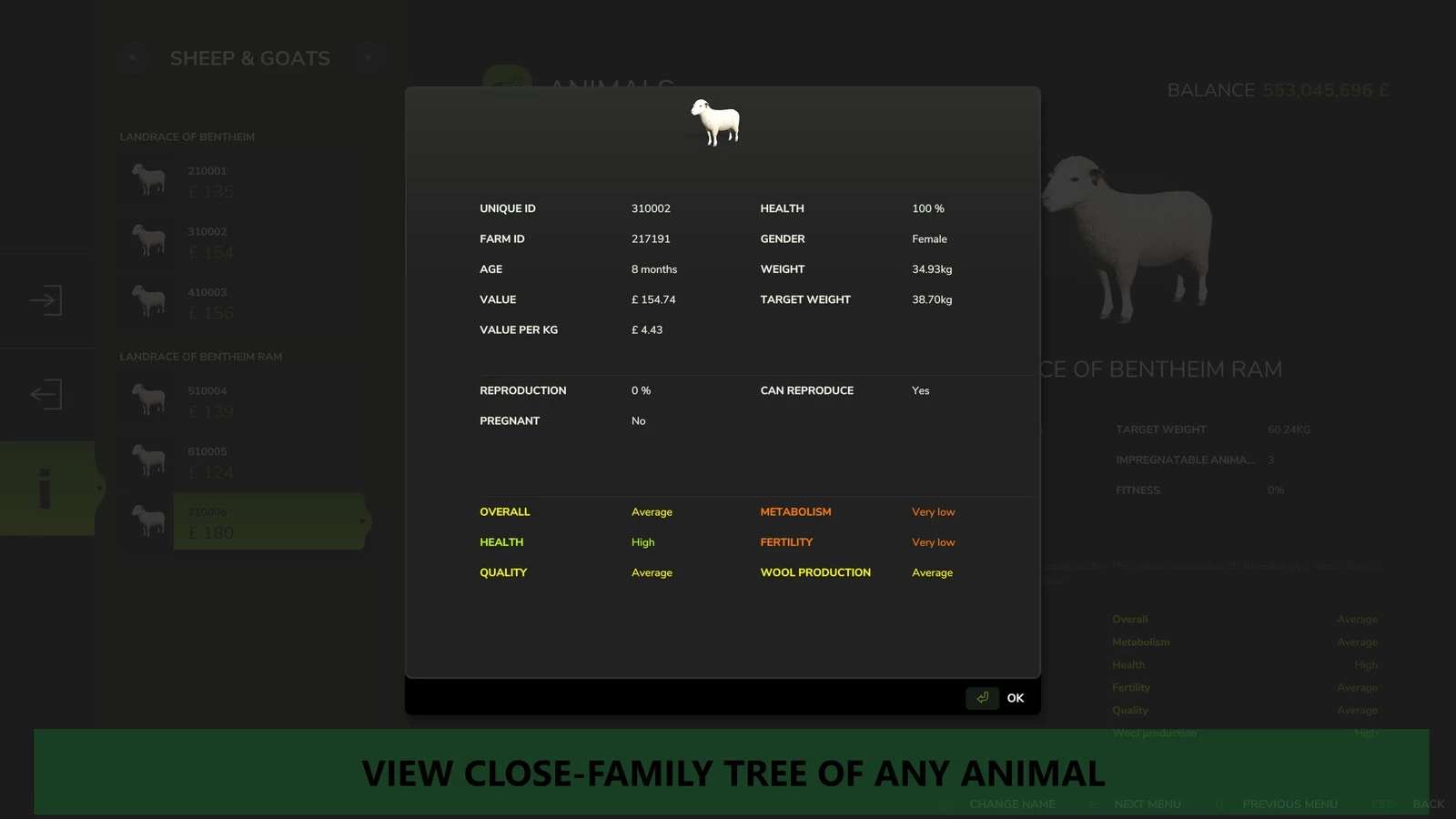 Each animal is unique and no longer a template. It is generated based on the quality of the farm it came from.