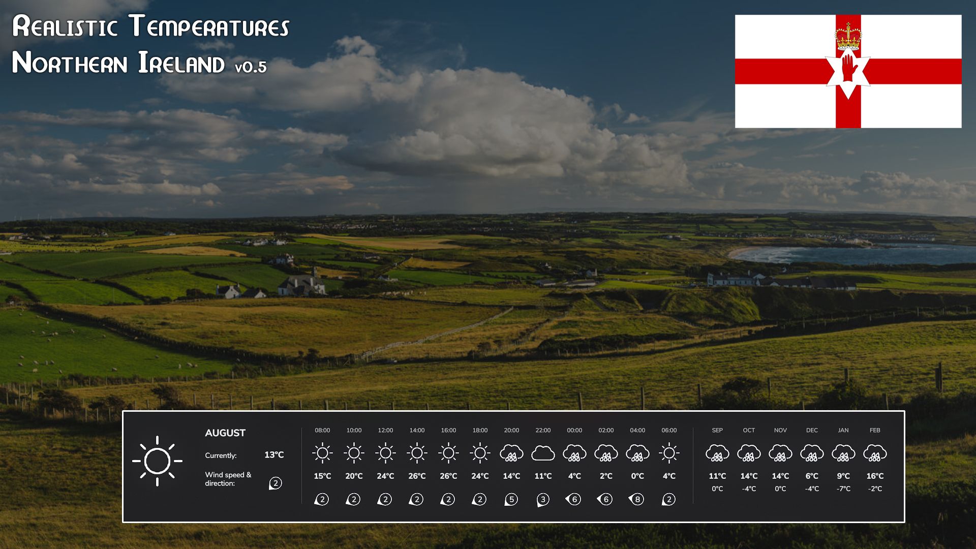 I bring you Realistic Temperatures – Northern Ireland, an update for the eleventh of a series of scripts for FS25 that will allow for more realistic and varied temperatures depending on the region you are playing.