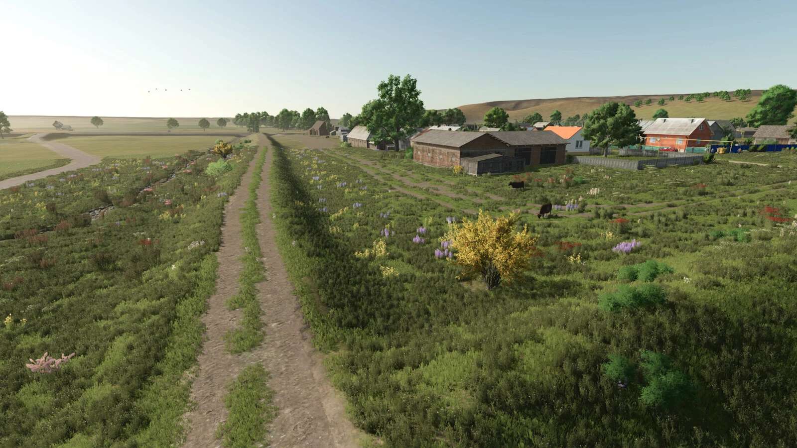 This map features a rural village landscape based on a real-looking area in the Ural region of Russia. The village has approximately 500 inhabitants. There are no pre-built factories or industrial complexes—only the essential village structures are included. The map is designed for classic agriculture and traditional field work. However, there is plenty of space for players to place their own additional buildings or production chains.