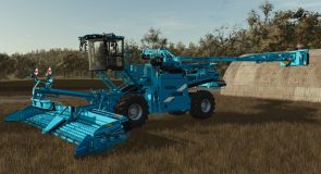 It offers a reach of up to 15 m, hydraulic all-wheel and rear-axle steering, a multifunctional cab with a 12.1″ touchscreen display and a comfortable driving position, and a sophisticated cleaning concept including belly belts and post-cleaning elements for high throughput and gentle beet processing.