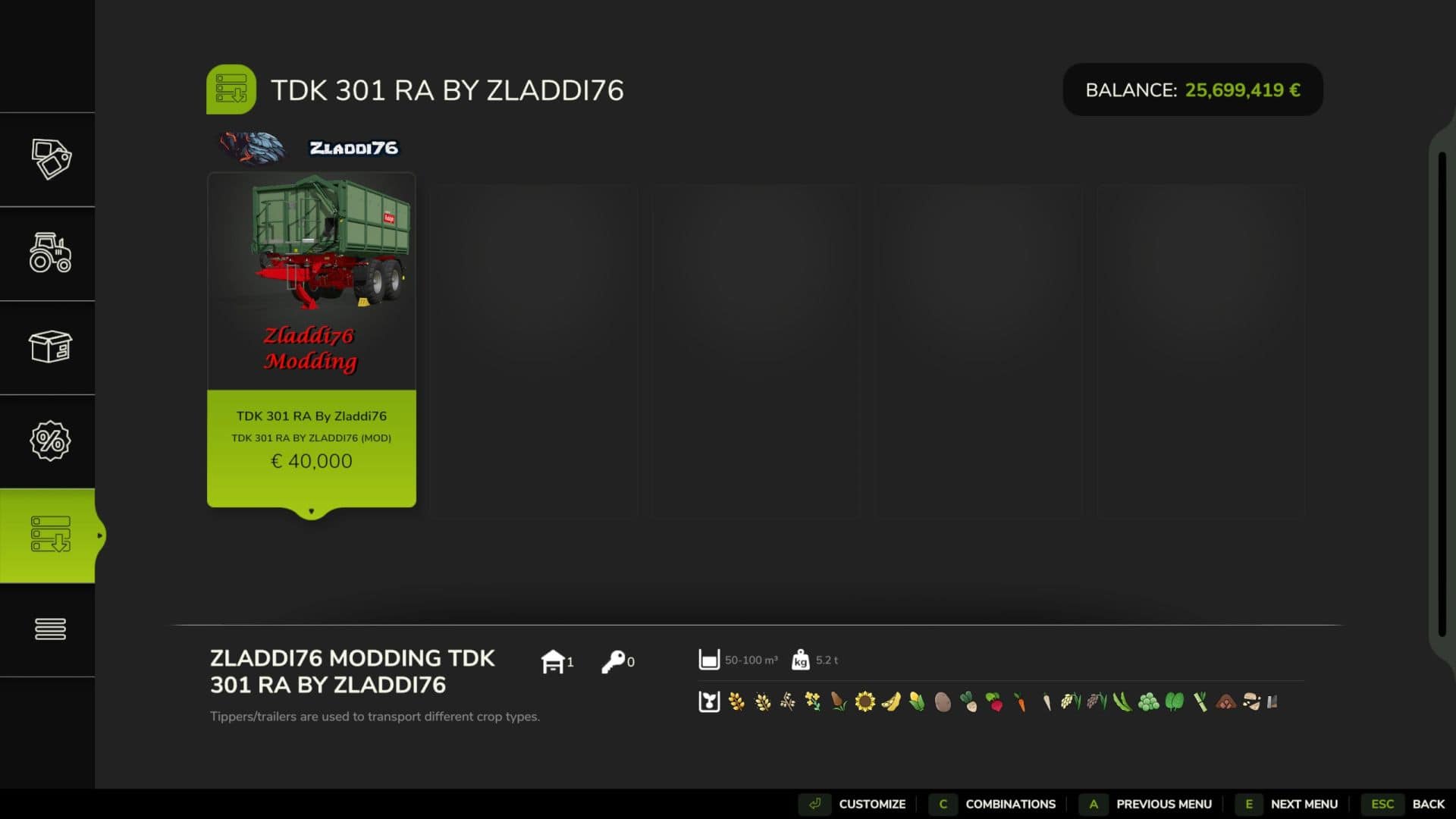 This skip from Rudolph has its capacity unrealistically increased to 100,000L, so that your harvests are much quicker.
