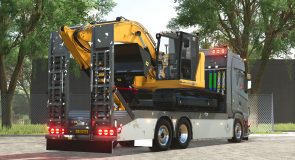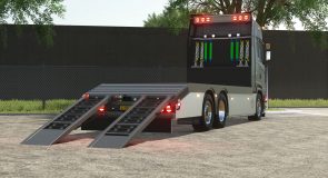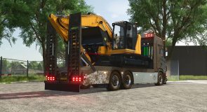 This Scania ramp truck is designed for the safe and efficient transport of agricultural machinery in Farming Simulator 25. Thanks to the ramps and the strong chassis, you can easily load and transport tractors, shovels and other vehicles between your fields and farm.