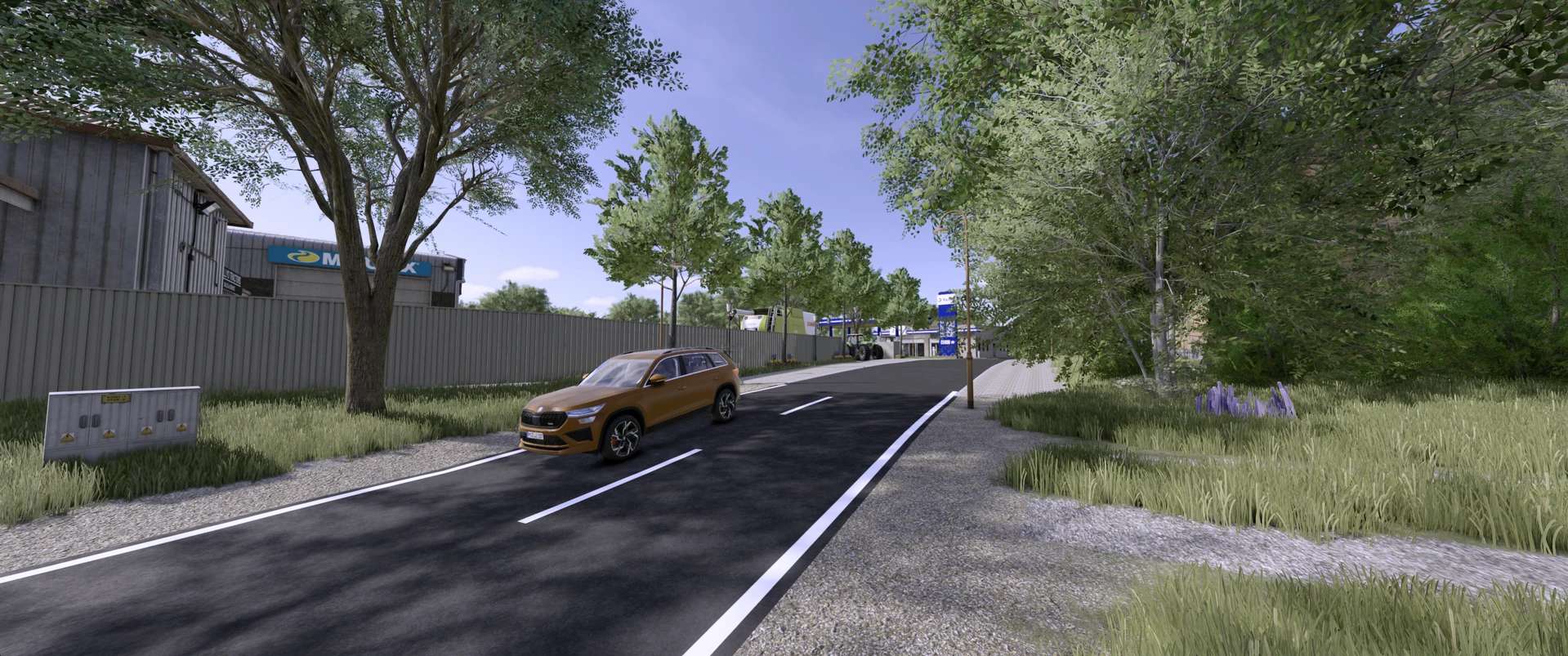 Some country roads will have guardrails (like in real life).