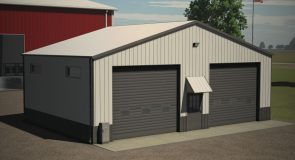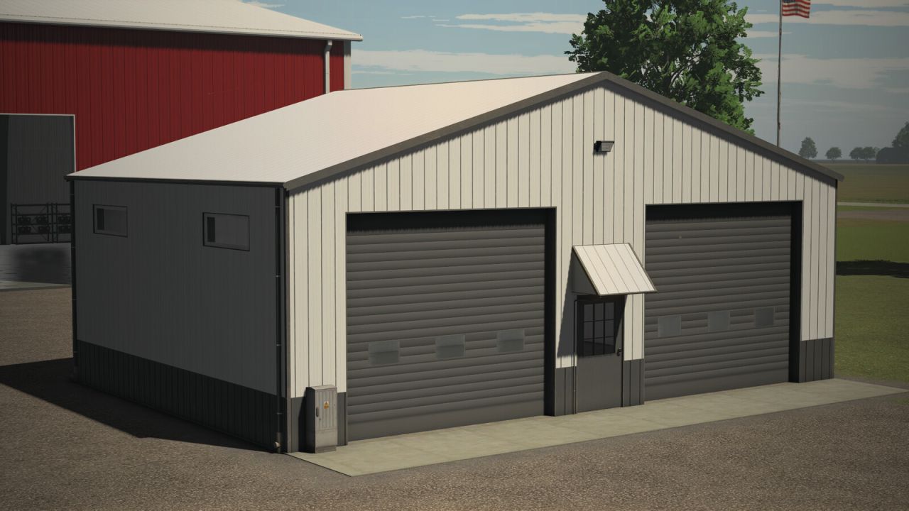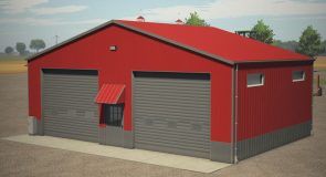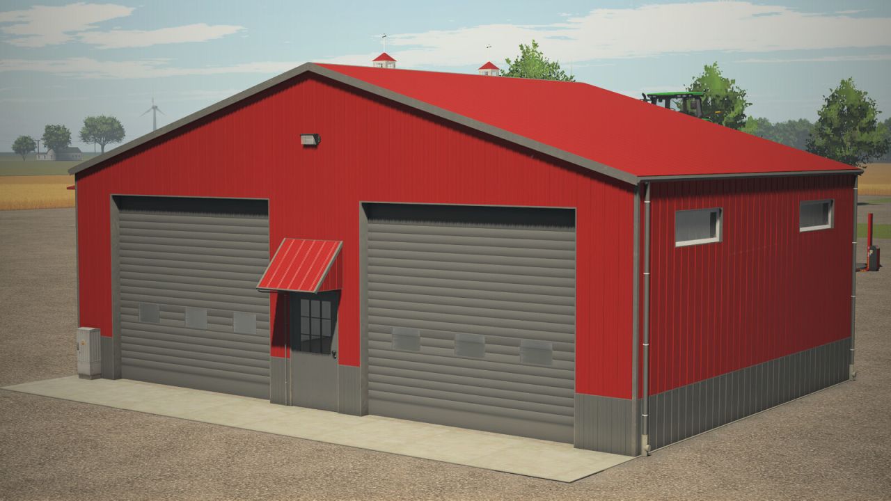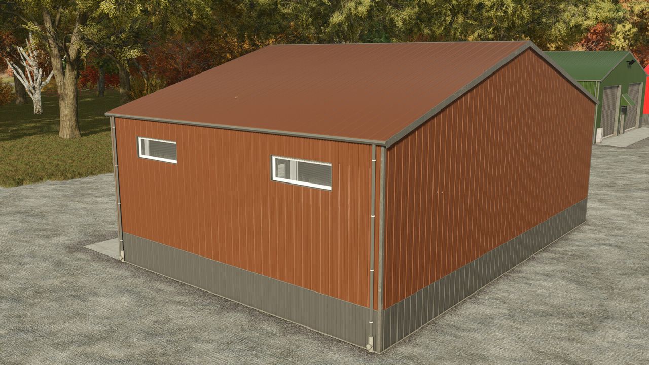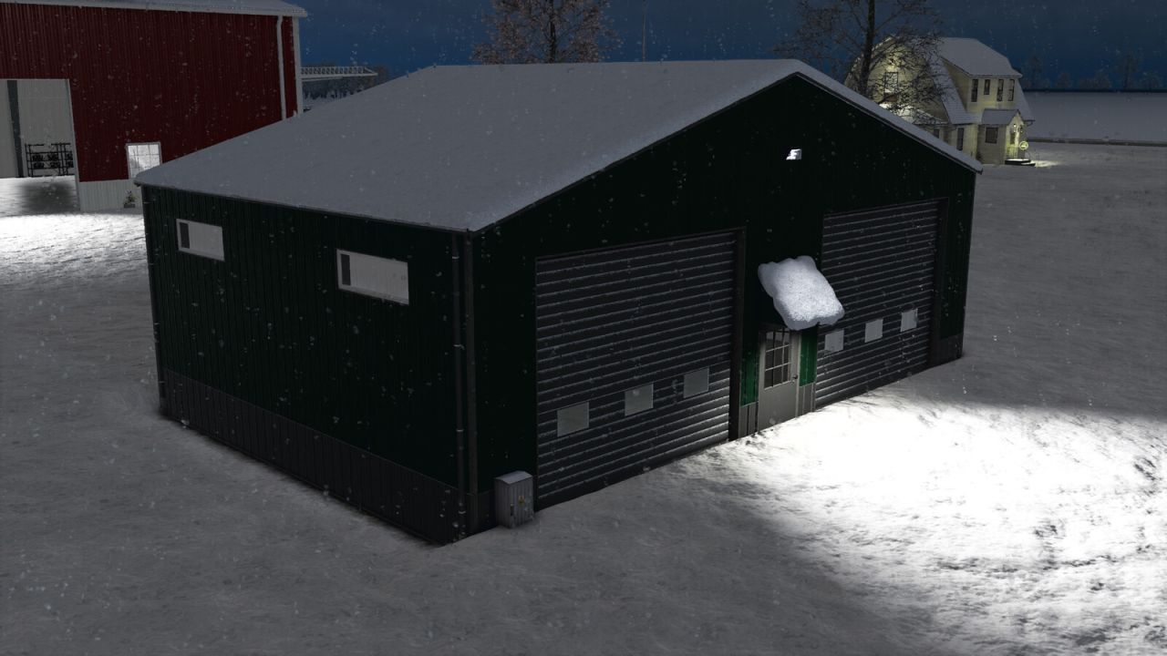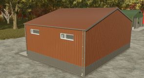 Small metal hall with small single and big double roller doors. It has lightning inside and You can choose color of outside metal.