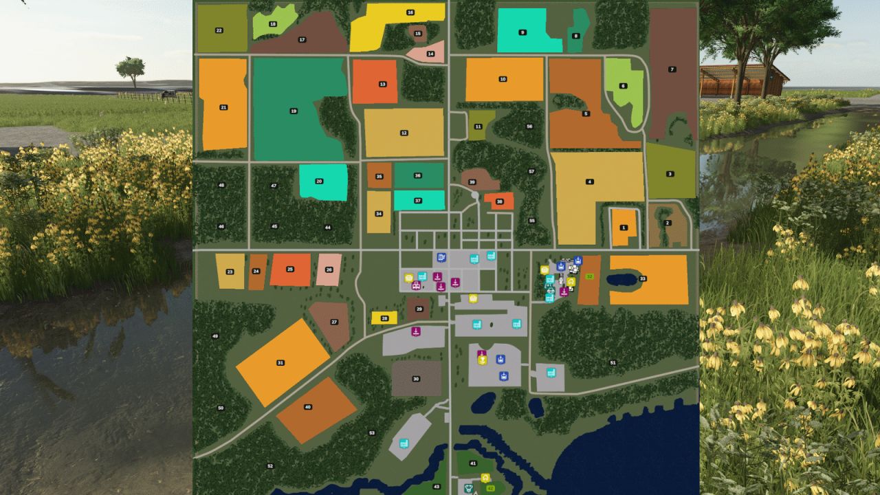 This mid-sized map blends scenic realism with versatile gameplay. Featuring rolling terrain, authentic field shapes, and a small-town charm inspired by the real Starbuck community, the map supports arable farming, forestry, and animal husbandry right out of the gate.