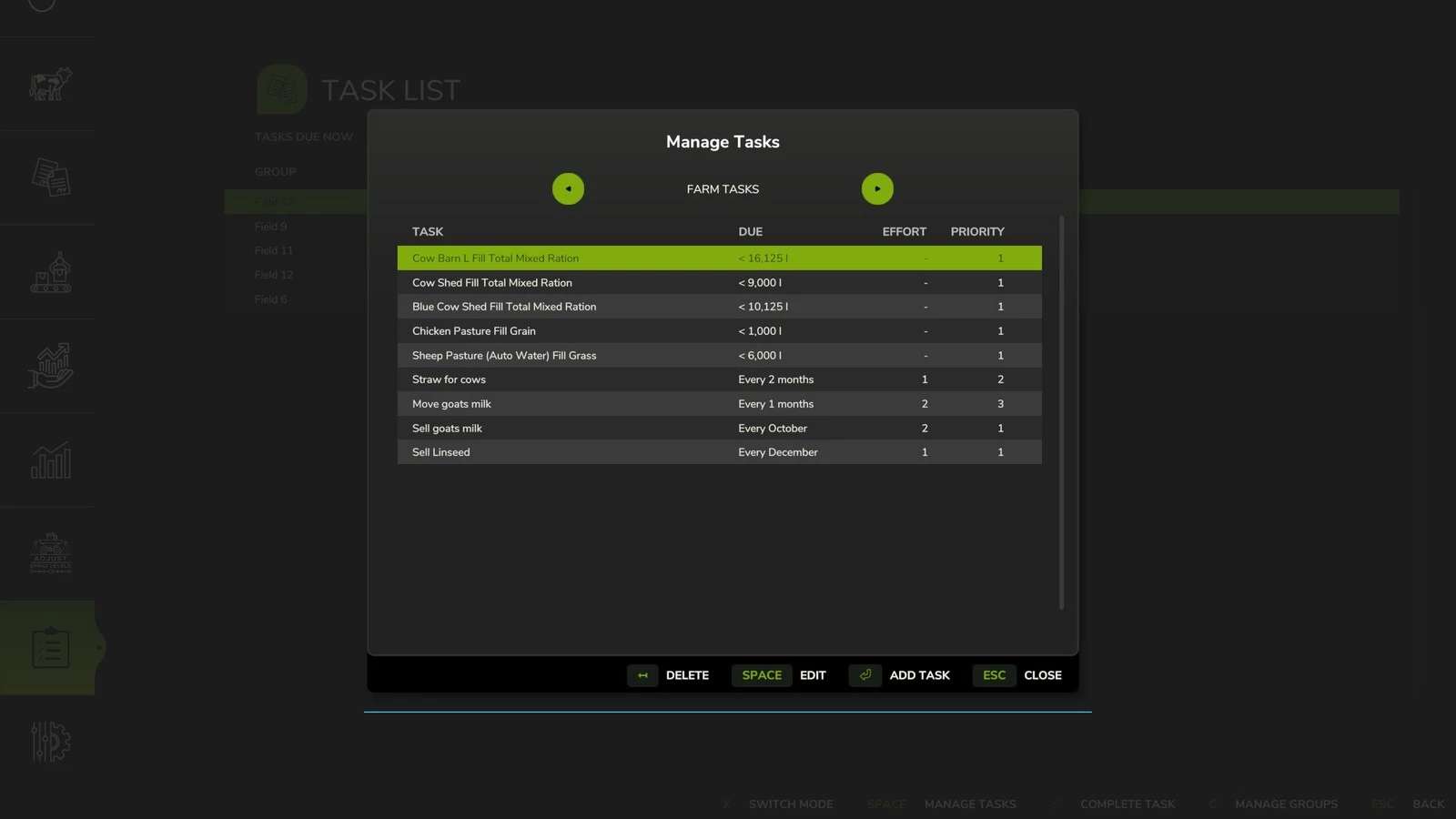 – Create groups to contain related tasks, such as Field 10 or General Farm Tasks.