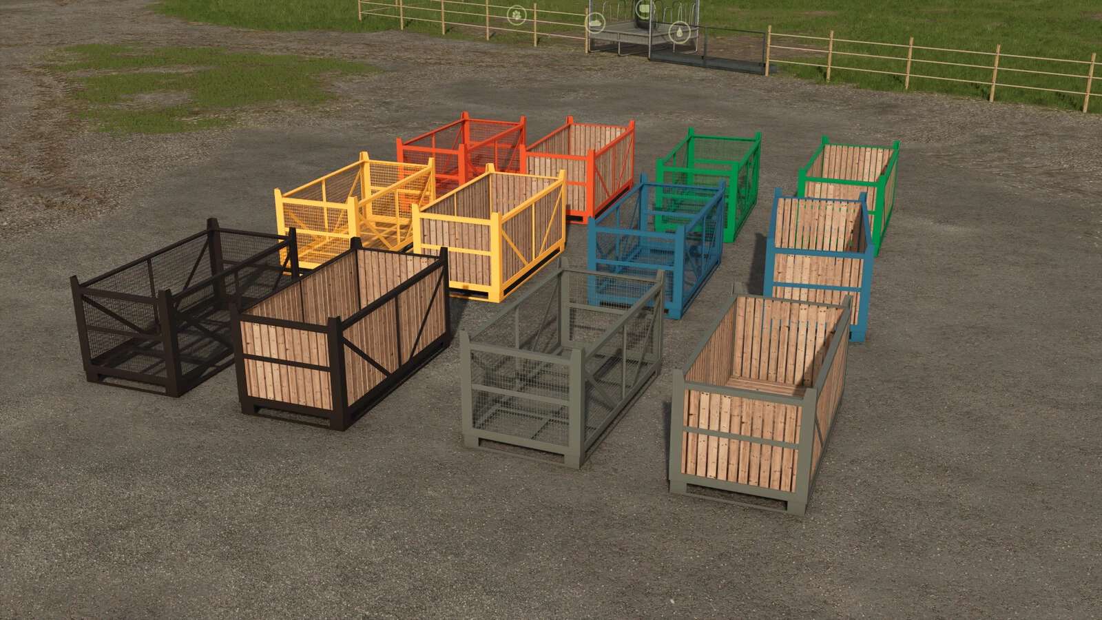 Transport Boxes in Full Metal Model or with Wooden Planks. Essential helpers to store your vegetables at your Farm.