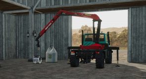 A crane can be purchased for $22,100 in the store category “Miscellaneous”, it can only be attached to the long Unimog U1X50. The crane has a hook with which big bags can be loaded. When the crane is attached, the Unimog can then also pick up the short body trough.