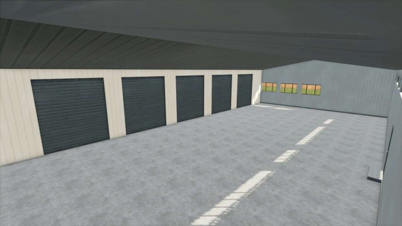 A small factory fire station with 5 parking spaces. All 5 goals are animated and working.