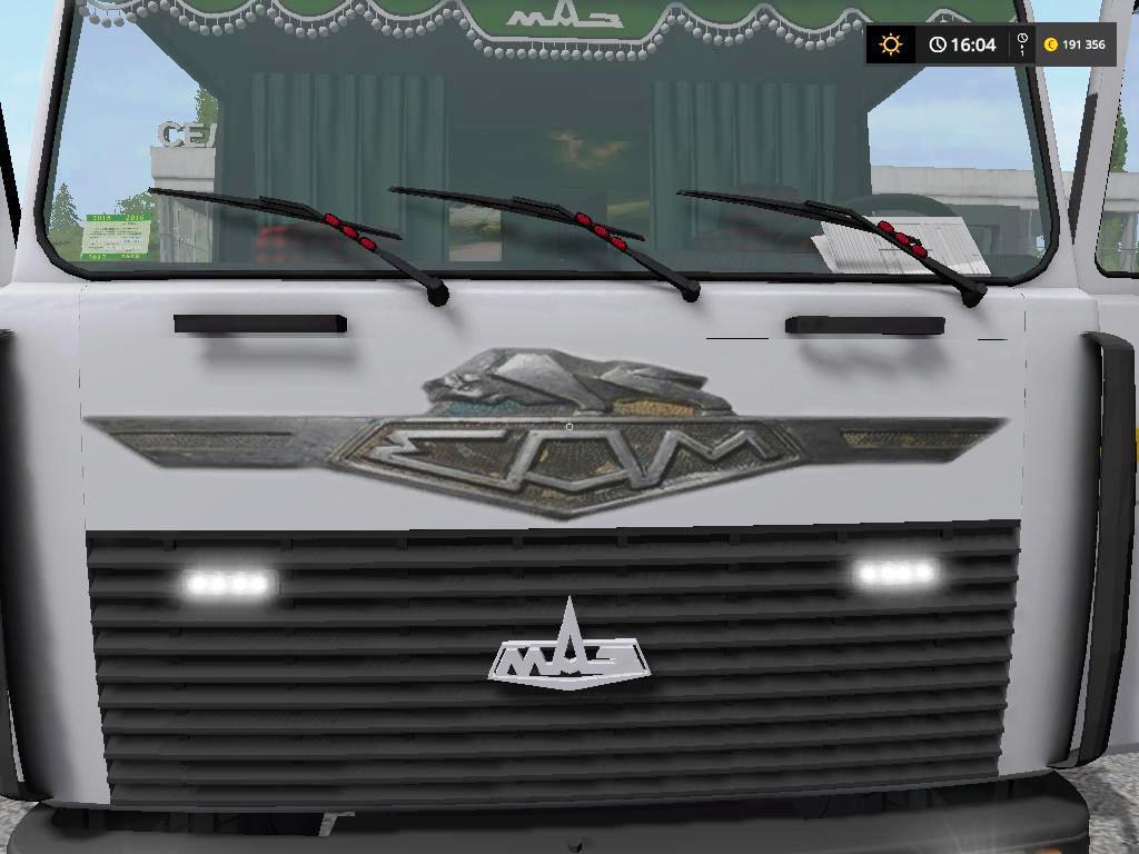 Added cab animation and front sticker – Power: 235-300 l / s, – Speed: 102-105 km / h. – Body / trailer volume: 22000/18000 liters. – Two engines: YaMZ-236, YaMZ-238, double-sided unloading, awning, trailer trolley locking, tow hitch. Mirrors, soundproofing, animation of the dashboard and mudguards. Working lighting, washable.