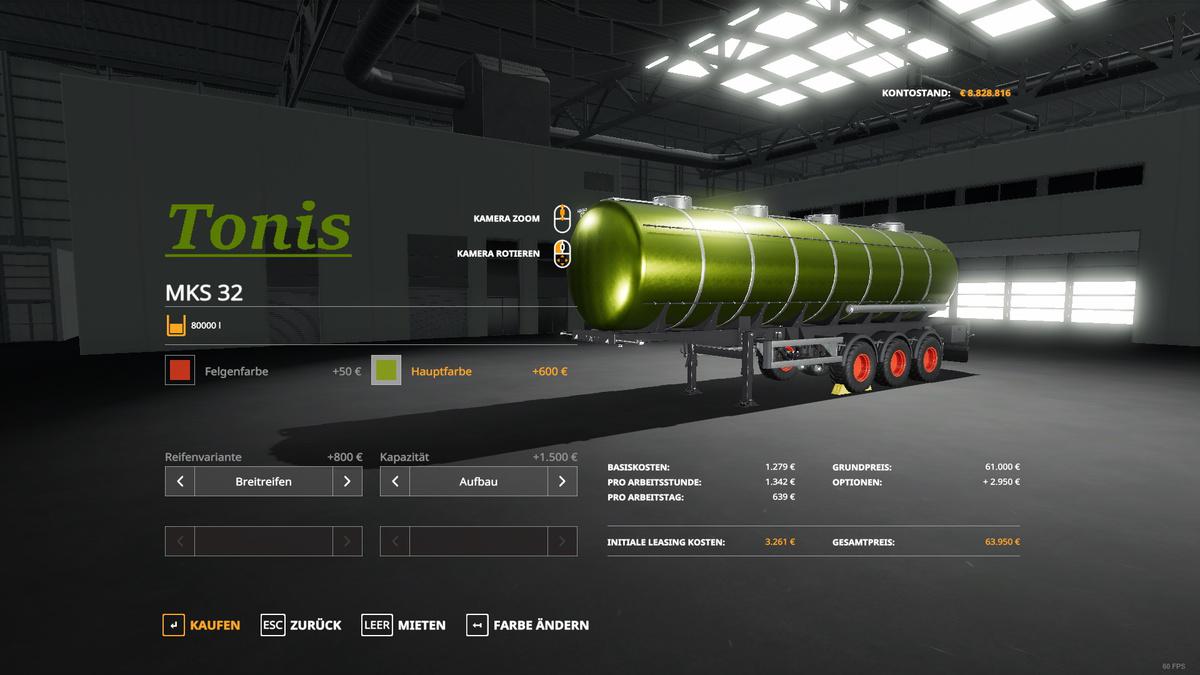 This tank truck can actually load all liquids that go into such a trailer, it has a color choice and a tank volume selection (40,000, 60,000, 80,000, 100,000 l).
