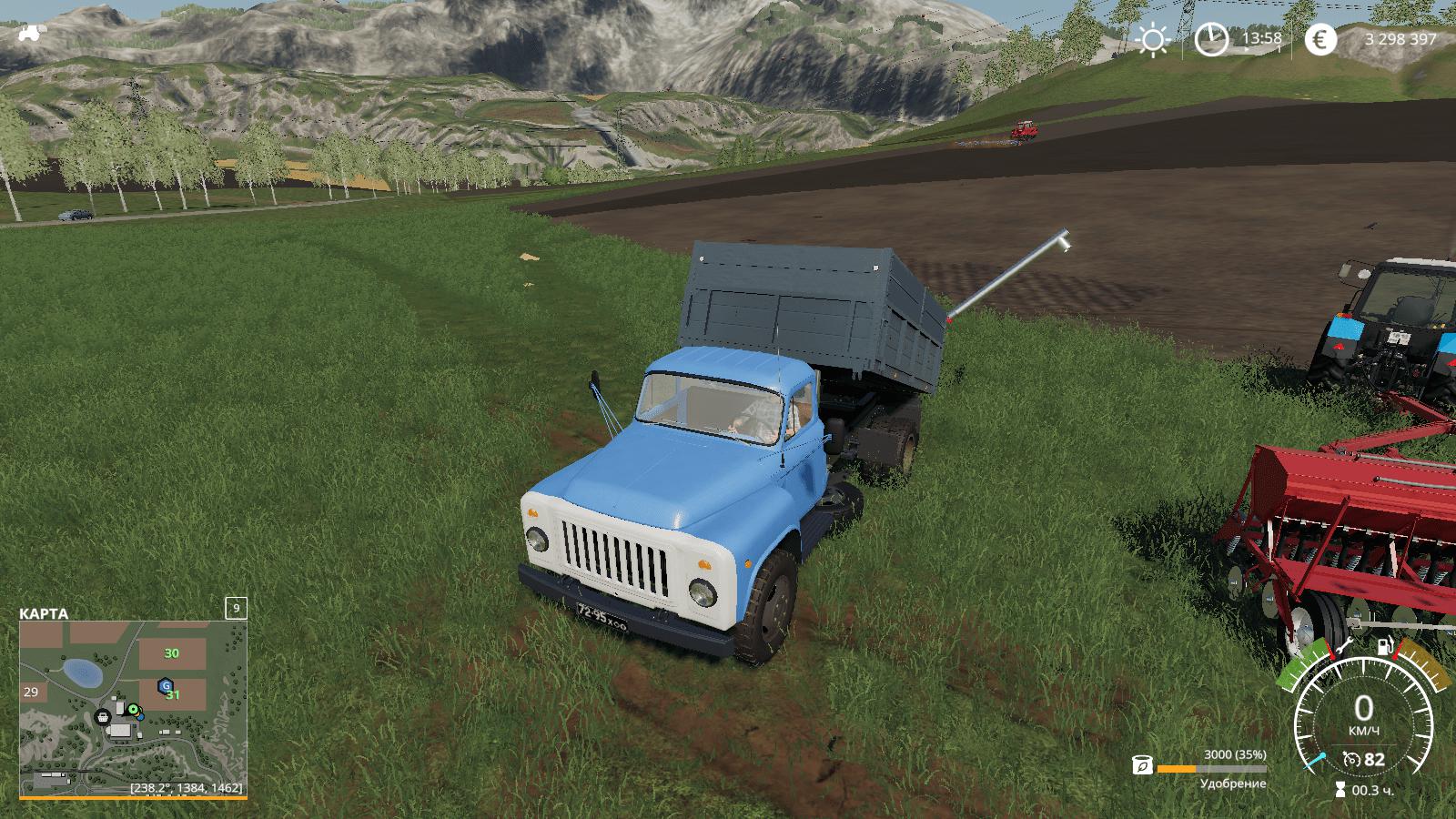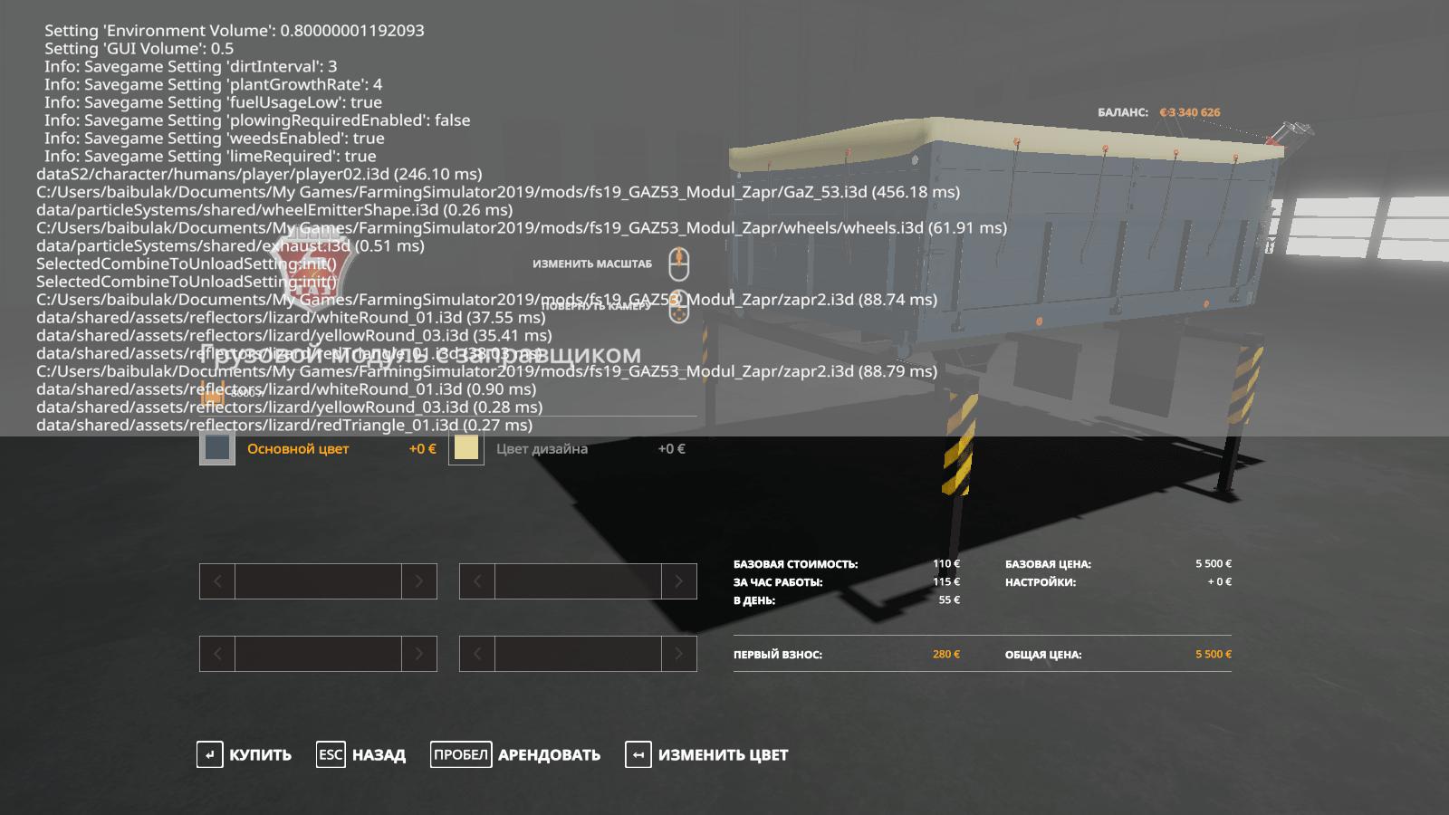 Added a seeder tanker from the body with stripes. Capacity 8000 l. (In real life, 2 bunkers from the Yenisei-1200 of 4500 liters each are included in such a body) Price 5500 Fills with seeds, fertilizers and lime. I added the unloading auger, fixed i3d, xml completely redone. The log is clean Works with the original pack of version 2.5.1 I left one GAZ-53 in the pack, suddenly someone will check without this pack.