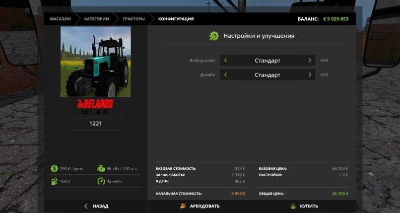 Power of tractor engine – 130 hp Maximum speed – 43 km / h. Price is 46,200 (day 290). The tank is 160 liters. IC – control: doors, windows, roof, hood, etc. There are adjustable mirrors. When buying a design option is available. Working light engineering, mirrors, dashboard. Bleed and washed. Pure log.