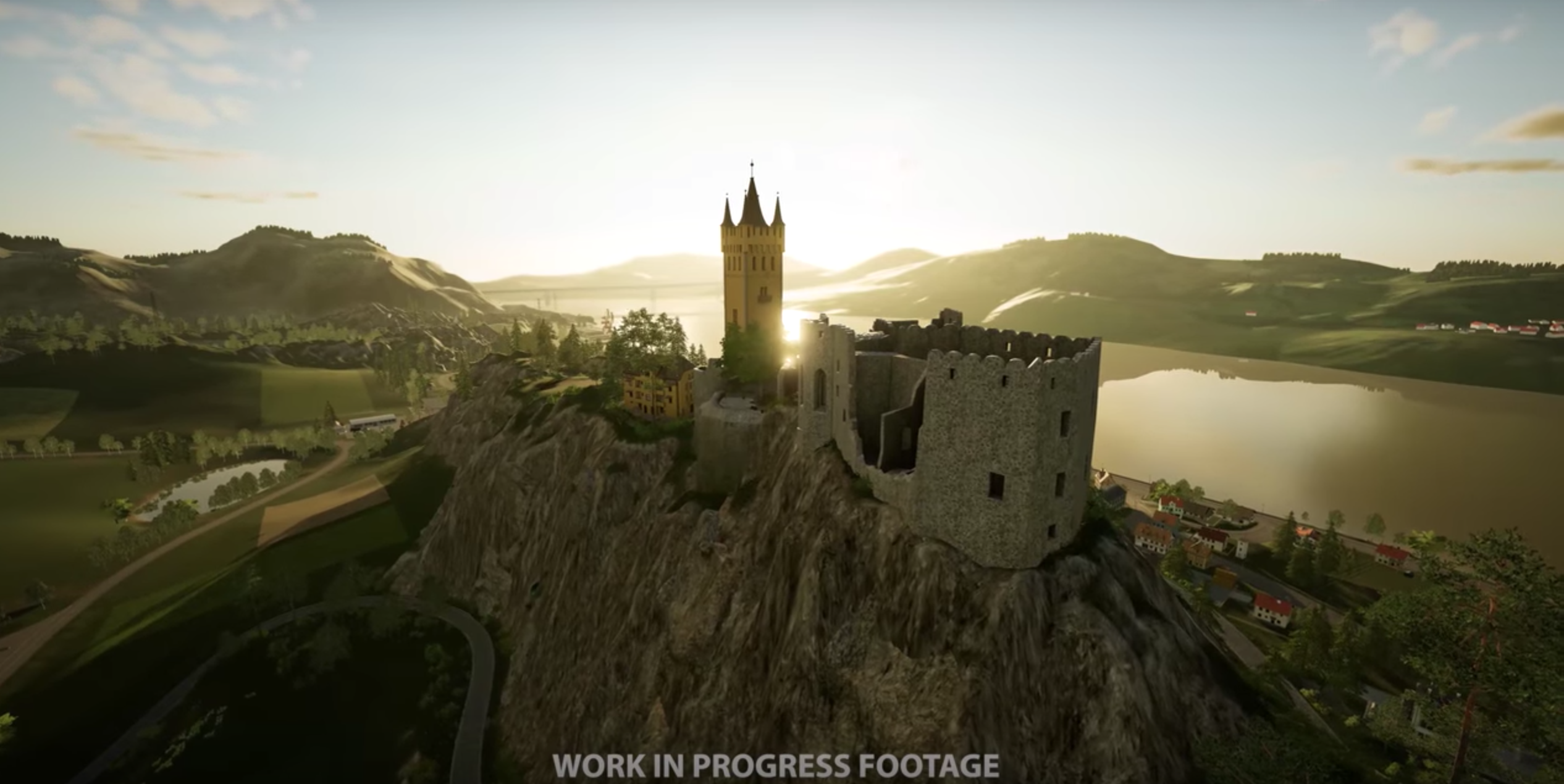 Take a tour through Felsbrunn, the new European map of Farming Simulator 19. When the game launches it will be filled with people and cars, of course. Everyone is just heading to gamescom right now because the map will be playable on the showfloor there for the first time.