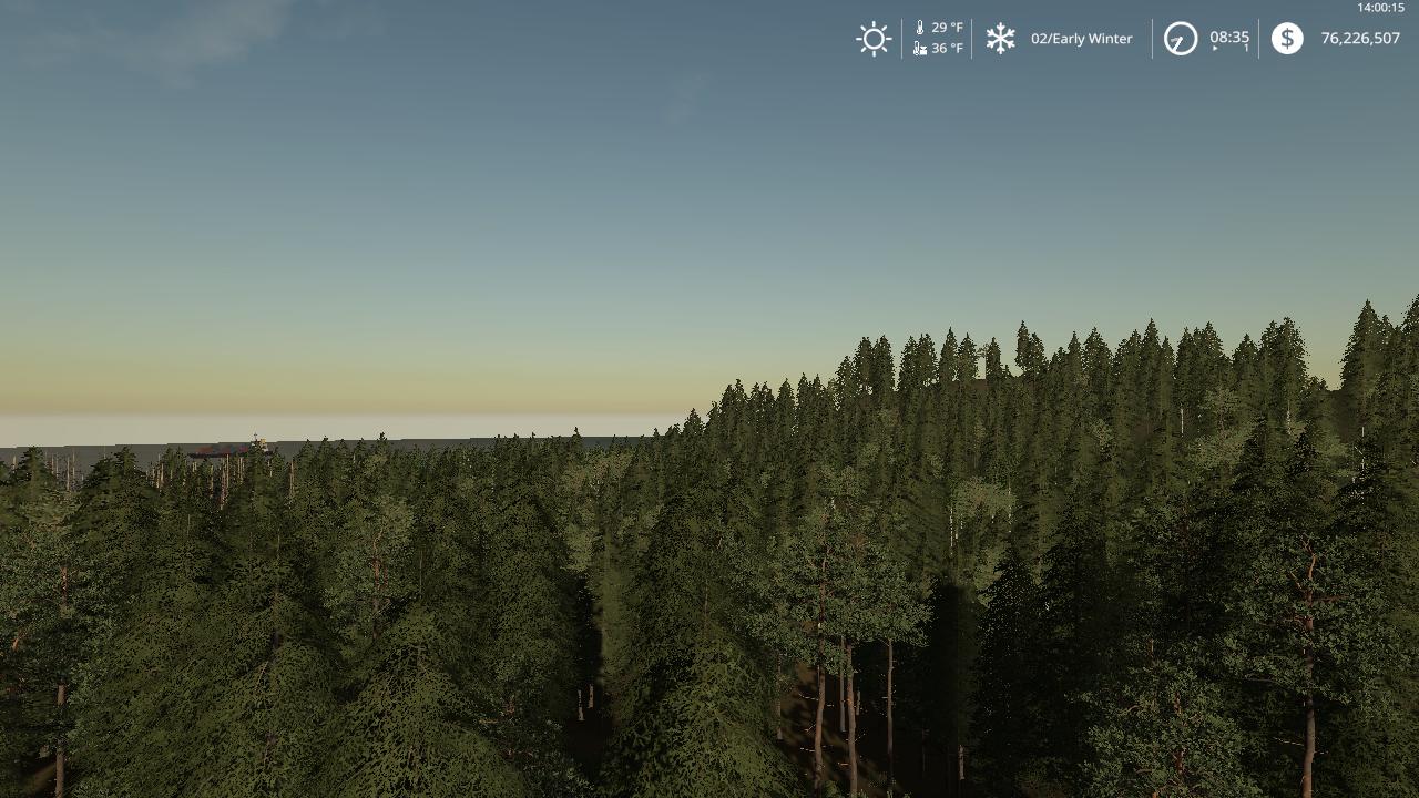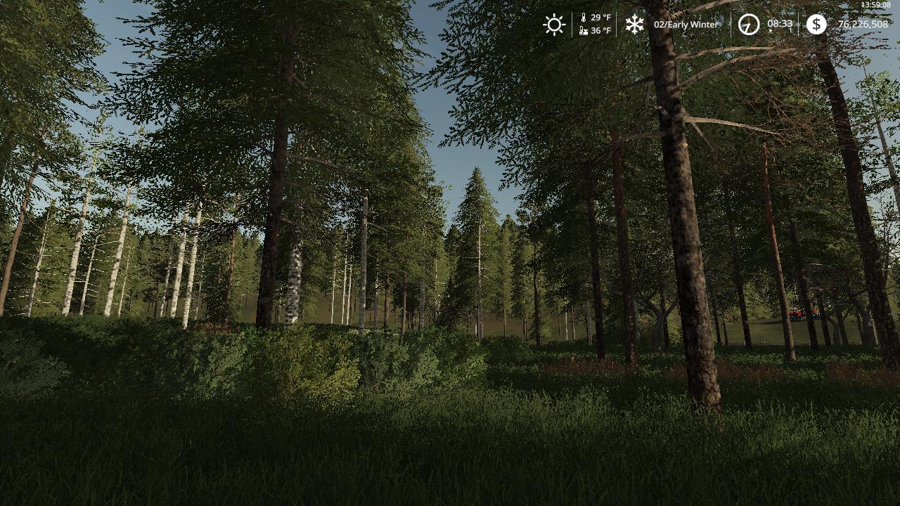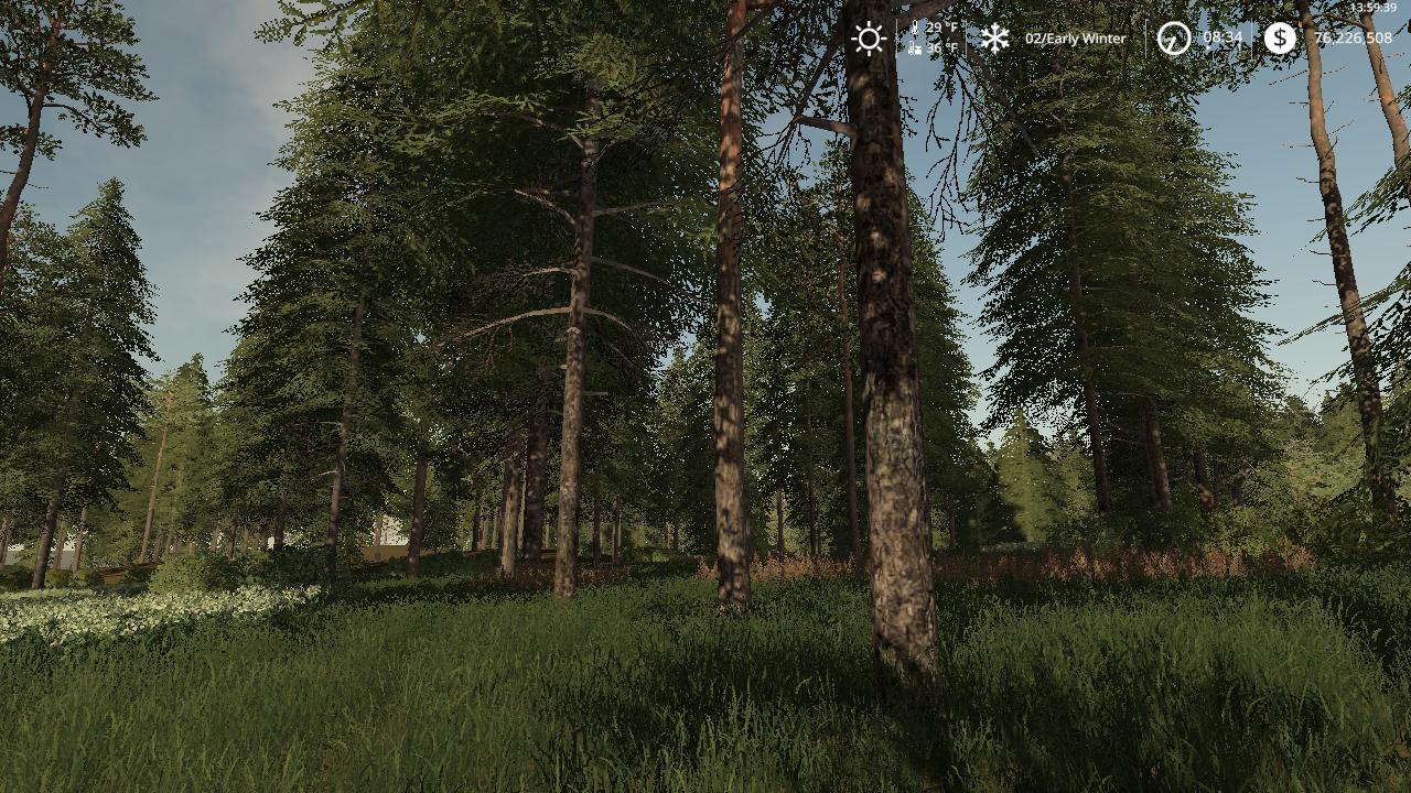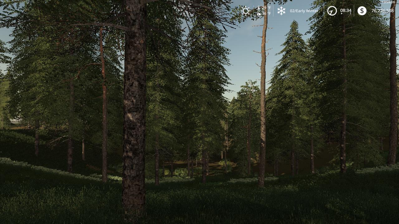 Are you tired of the same old mountain logging maps? Are you sick of having to travel 50 ft to cut the next tree? Are you sick to death of cutting the same trees all the time? If you answered yes to any of these questions then come on down to NewWoodshire edit V2, Where the land is not flat but its not the Himalayas either, where you can cut in a densely packed area or areas that are a bit more forgiving to your pc. There are also different tree types from big and small birch to the large deadwood trees to big pine and spruce. Oh ya, and you can still farm and have all the FS features as well, so take the short…or long drive to NewWoodshire edit V2 to cut till the cows come home. (there are no borders on this map anymore so you will fall off if your not careful, you have been warned so your untimely death is not on my hands) I take no credit for this map as that belongs to the creator, all I did was add some forest and make all the land buyable and got rid of the borders to open it up.