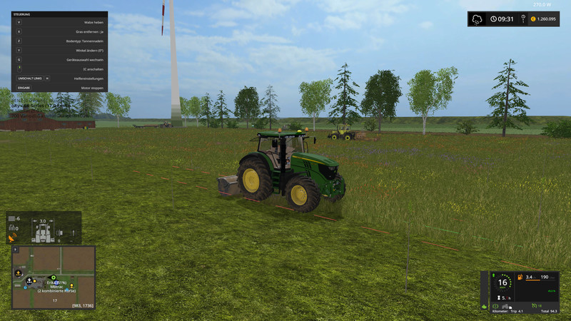North German landscape with 45 fields and 16 grass fields. 4 farms and 4 biogas plants, Hühnerhof and Rinderhof. Extra fruit varieties Oats, rye and hops. Take a look at the video for the map presentation in peace.