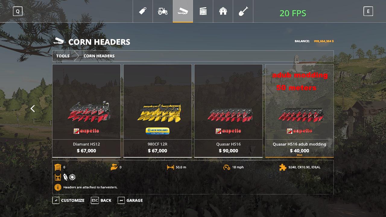 This header has a 50 meter harvest width. Also can go 18 mph or 30kph.