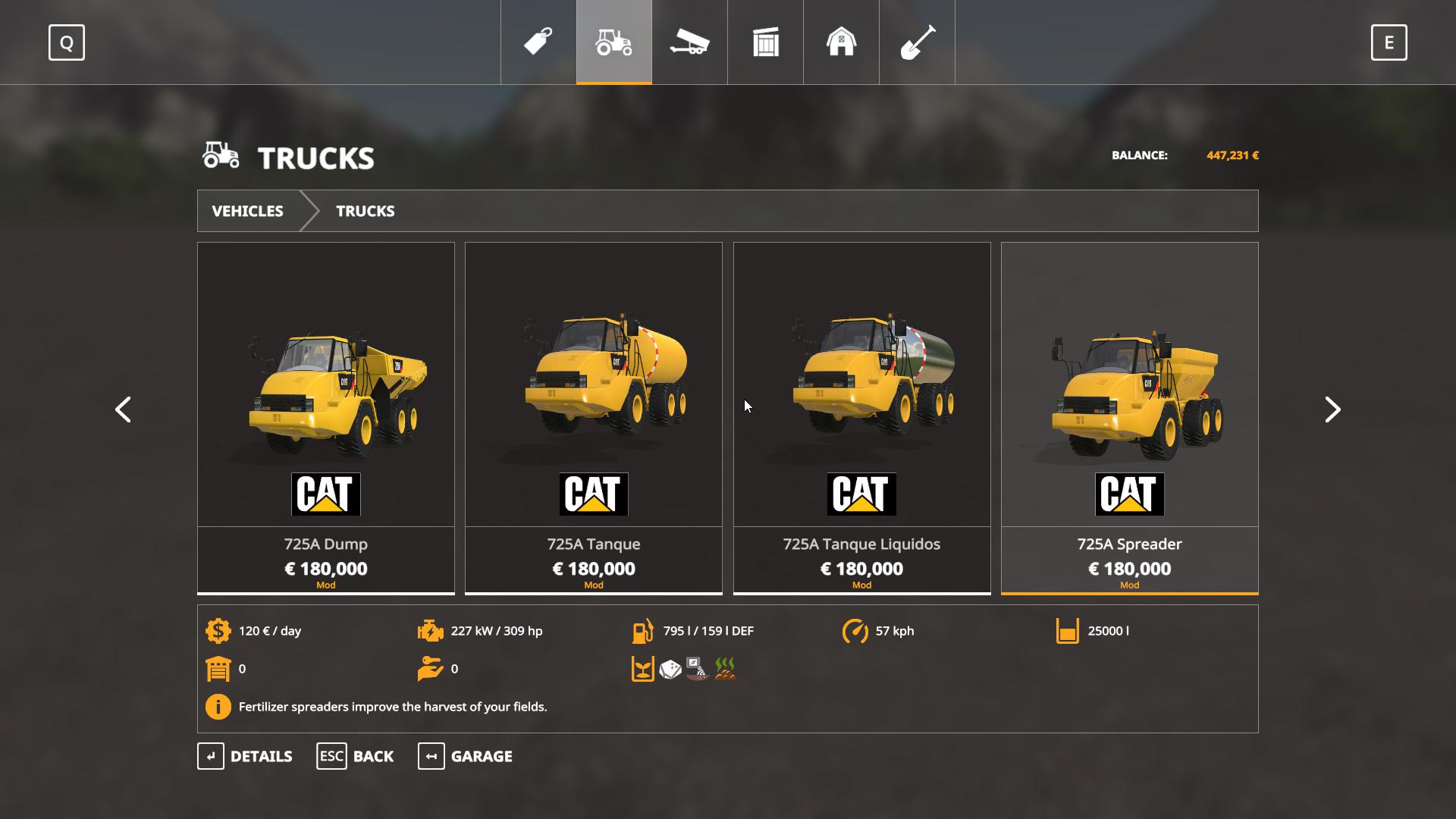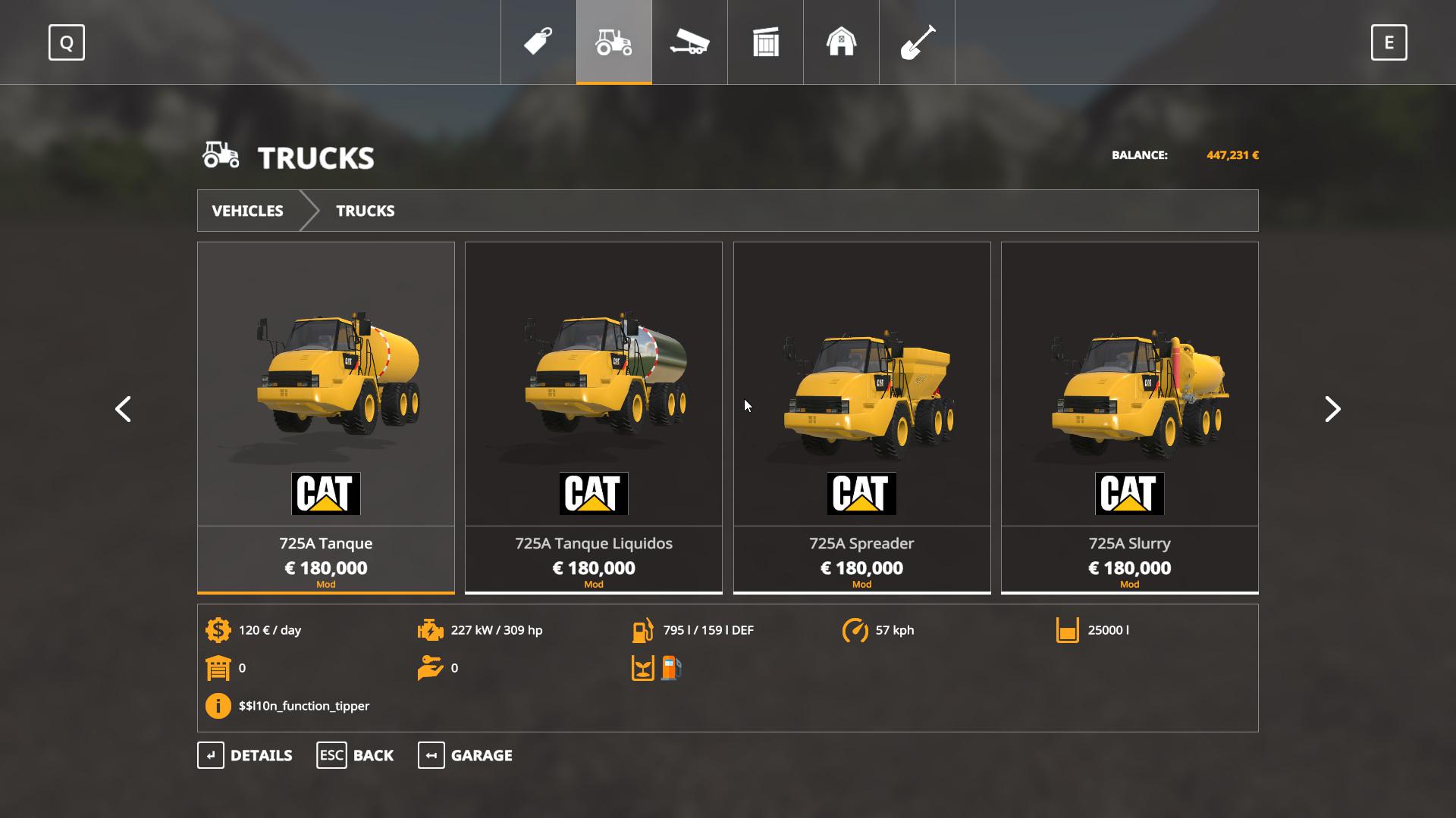 And the Cat 725A pack