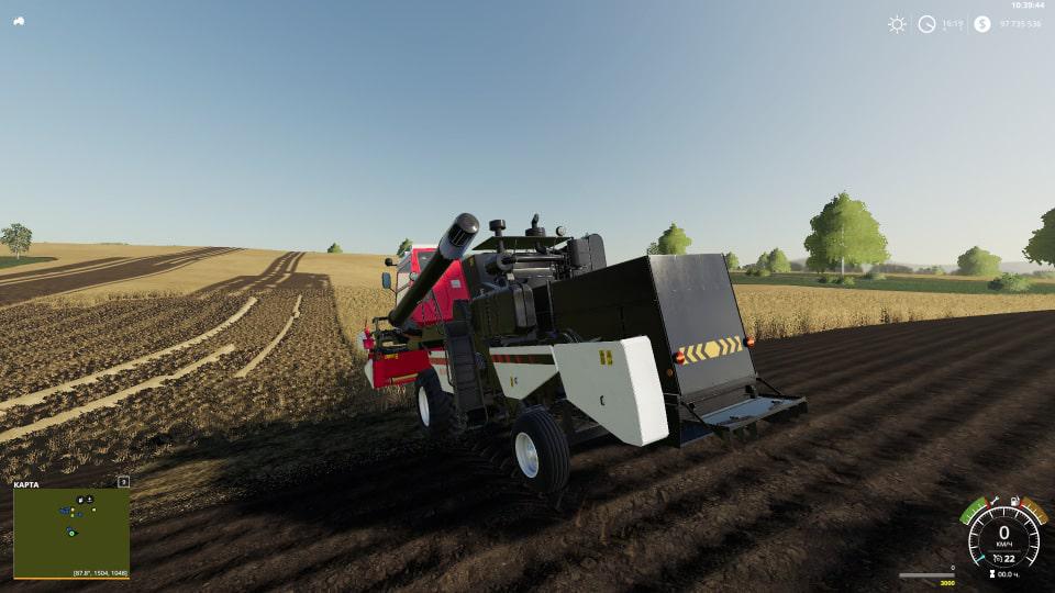 Floating header, will not hang on bumps. Rear axle is not separate. Claims to the Giants. The price is too high for balance, since the new combine in Russia costs 38,000 Euros. Do not judge strictly! I am a converter, I’m just learning!