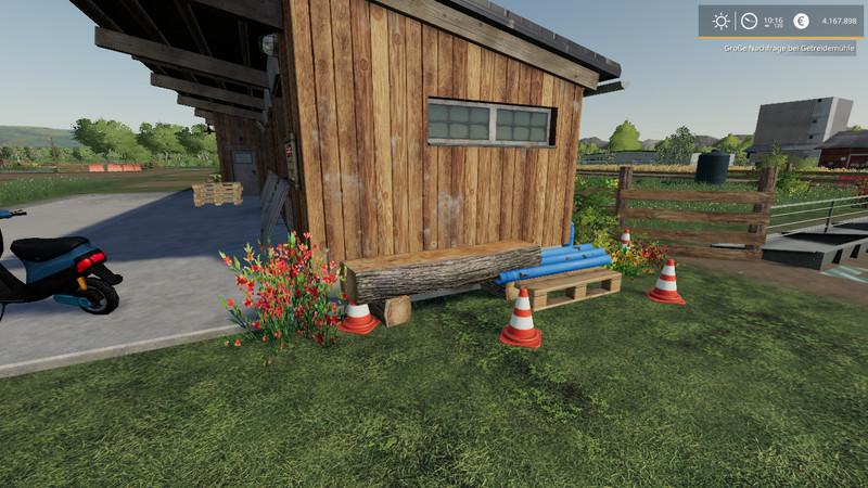 The reason for the 2 different design variants is this: we always place 2 sheepsties next to each other. That would not look really good if both sheepfolds had a deco forklift …