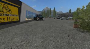large yard with animals, storage and machine parking