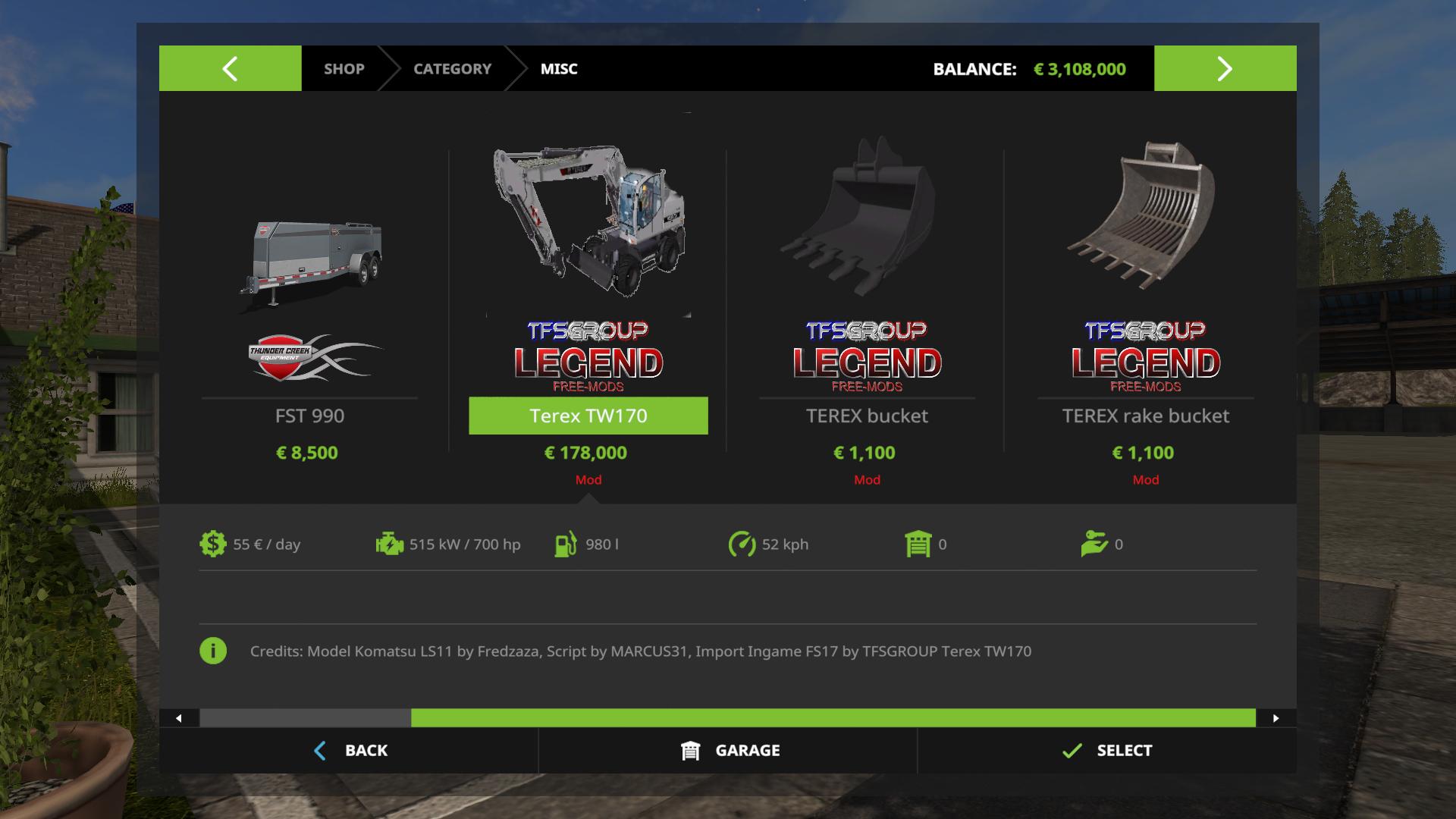 Model Komatsu LS11 by Fredzaza, Script by MARCUS31, Import Ingame FS17 by TFSGROUP Terex TW170