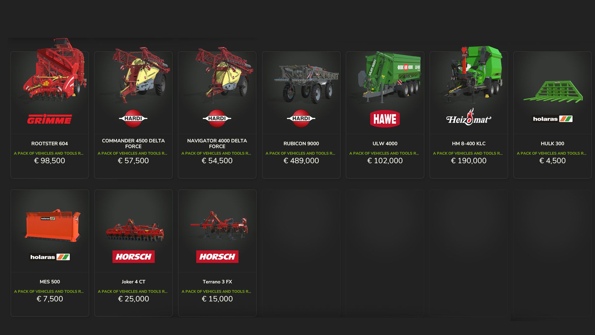 Grimme: ft300, gl420, gl860, ks754, rexor6300, rootster604