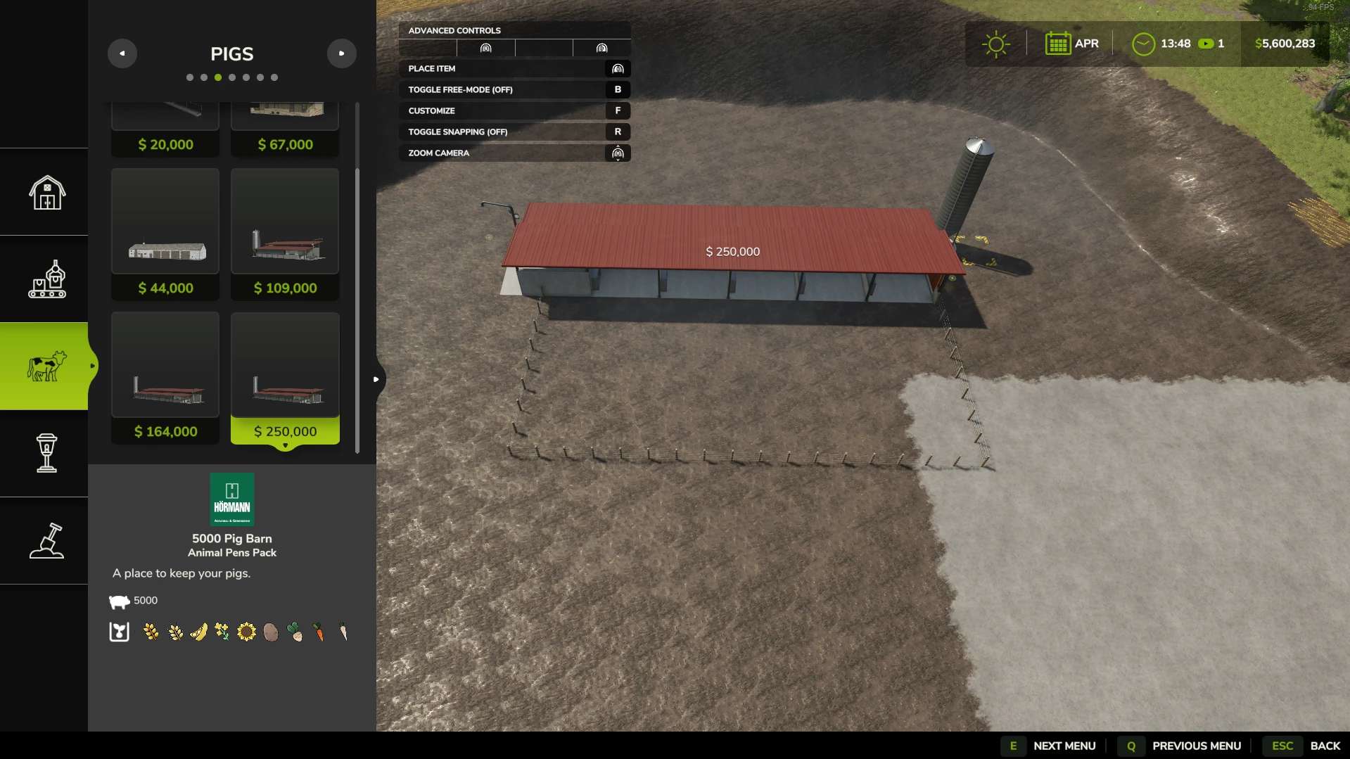 – Pigs hold 5000 with customizable pastures