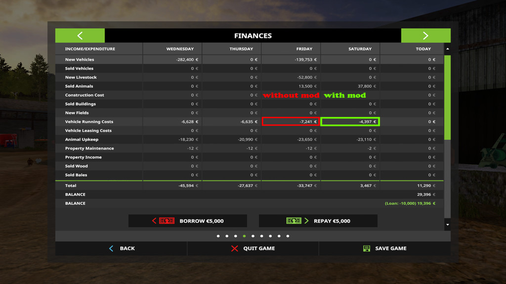 Mod adjusts the rate at which vehicles calculate upkeep cost.