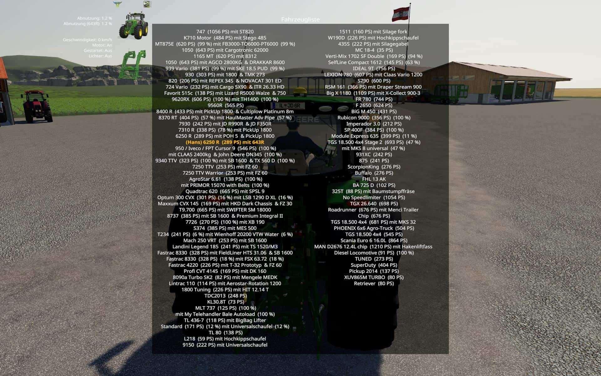 * List of all steerable vehicles (Specialization: Enterable)