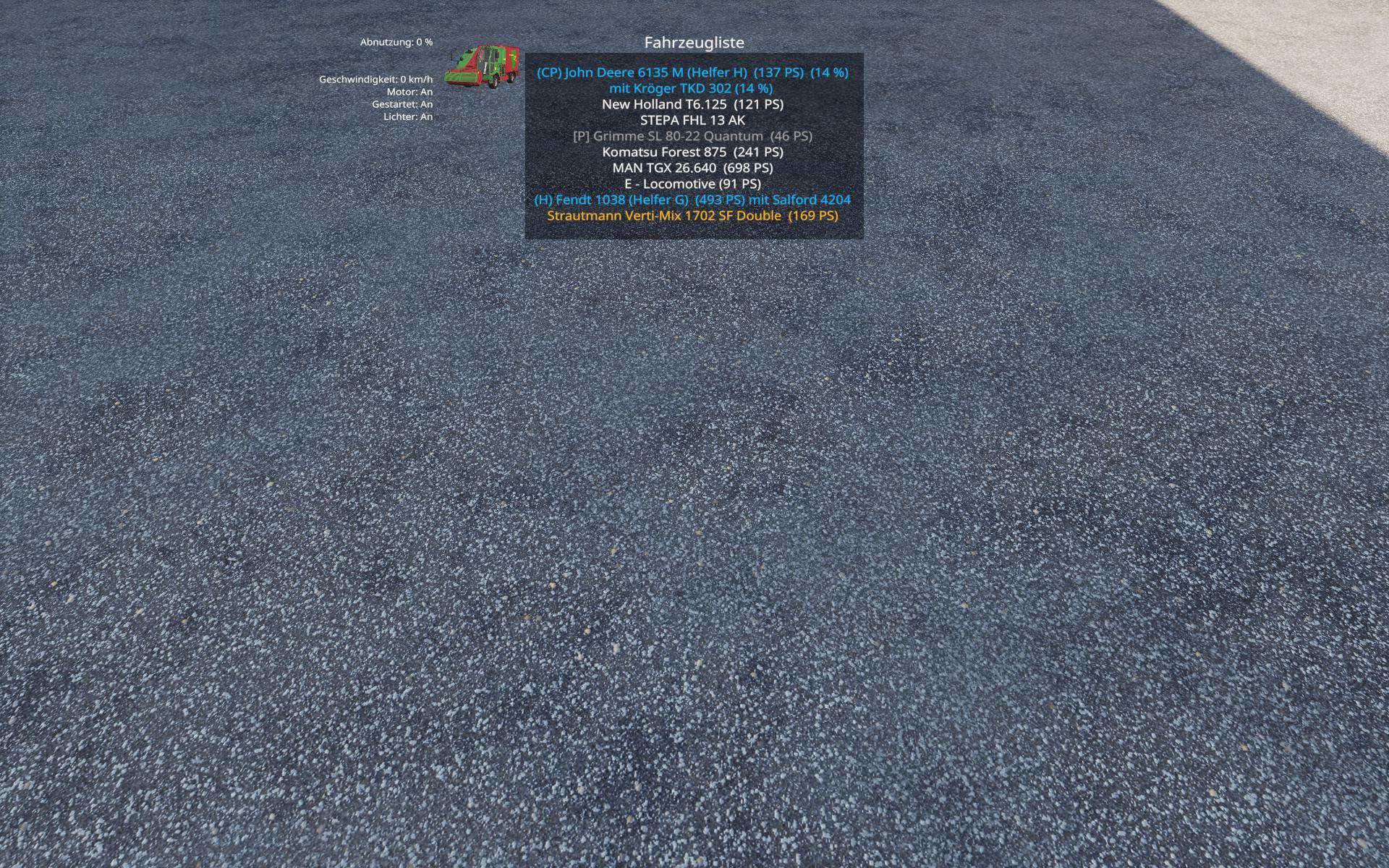 * Park your vehicles, so that a switch of vehicles via Tab ignores them