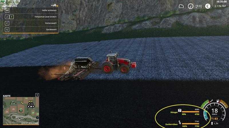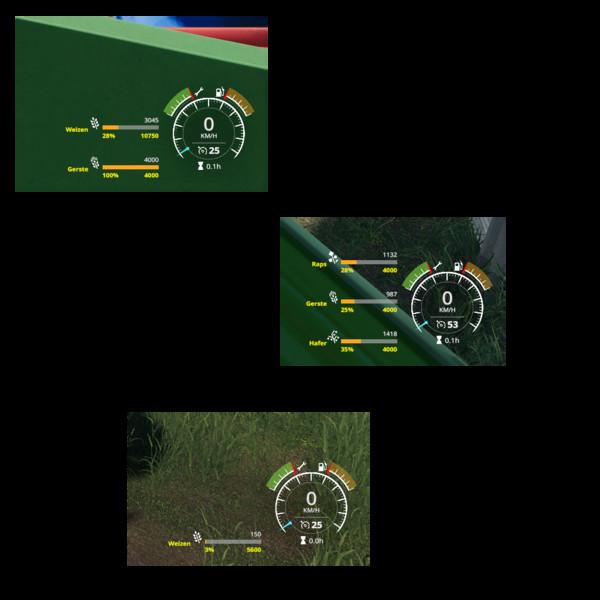 This mod extends the LS19 own VehicleFruit Hud with the following additional information.
